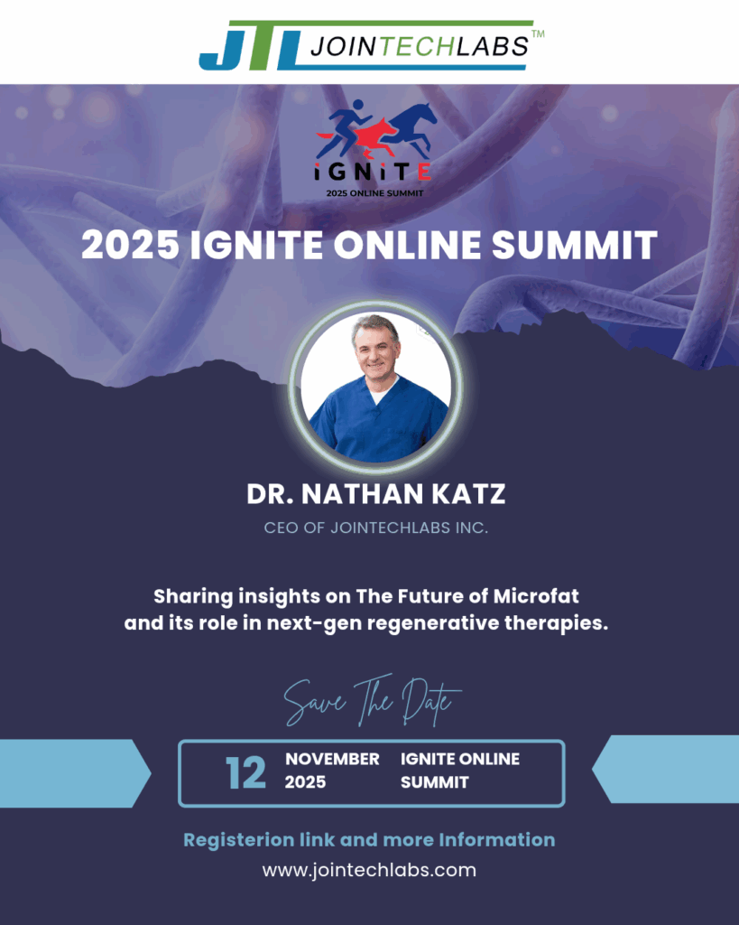 Dr. Katz will share insights on “The Future of Microfat”, exploring how Jointechlabs’ MiniTC® technology is shaping the next era of regenerative healing.